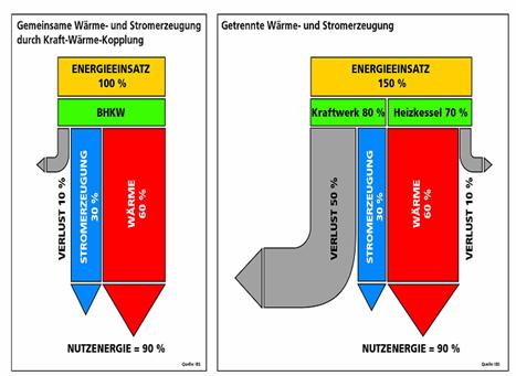des Motors (dies entspricht 60 % des eingesetzten Gases) als Gebäudeheizung
