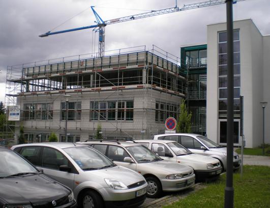 Der Erweiterungsbau - Bauabschnitt 1 - wurde mit zweischaliger Mauerwerkskonstruktion mit innenliegender Kerndämmung ausgeführt. Die Aufstockung erfolgt als Stahlrahmenkonstruktion mit einer Sandwichvorsatzschale. Dieses Gebäude liegt mit einem Jahresheizwärmebedarf von 60 KWh/m²/a ebenfalls im Niedrigenergiebereich. Über die großzügige Verglasung wird eine passive Nutzung der Sonnenenergie ermöglicht. Ebenso wurde großer Wert auf die Winddichtigkeit gelegt.
