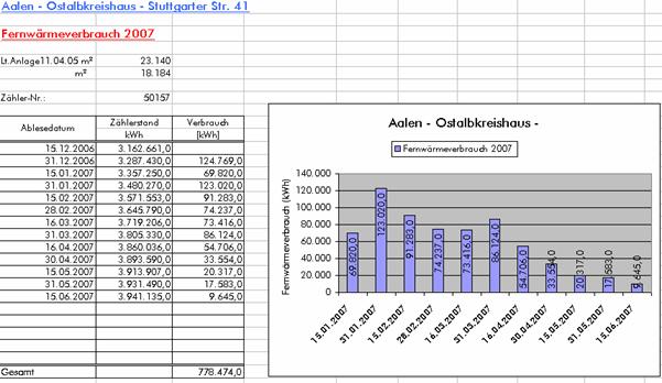 Beginn des Jahres 2007 wurde eine ständige Zählerstandserfassung der Verbräuche