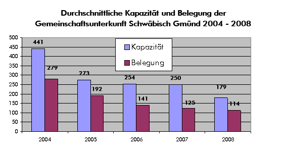 Die dem Ostalbkreis von der Landesaufnahmestelle Karlsruhe zugewiesenen Asylbewerber werden zentral in der Gemeinschaftsunterkunft für Flüchtlinge in Schwäbisch Gmünd vorläufig untergebracht. Das Gelände einschließlich Bewohner- und Verwaltungsgebäude hat der Landkreis von der Stadt Schwäbisch Gmünd angemietet.