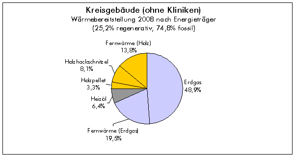 Für das Jahr 2009 liegen noch nicht alle Abrechnungen vor. Es ist jedoch davon auszugehen, dass auf Grund der Inbetriebnahme der neuen Wärmeversorgung des Ostalbkreishauses der Anteil erneuerbarer Energieträger zwischenzeitlich deutlich höher liegt, da in diesem Verwaltungsgebäude neben einem gasbetriebenen Blockheizkraftwerk nun auch eine Holzpelletheizung zum Einsatz kommt. Wärmeverbrauch