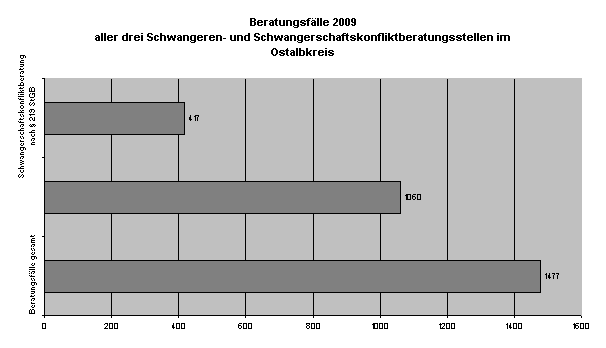 Im Ostalbkreis besteht ein gut ausgebautes, wohnortnahes und vielfältiges Angebot an allgemeiner Schwangerenberatung und Schwangerschaftskonfliktberatung. Die Beratungsstellen der Caritas und Diakonie sind jeweils mit 2,0 Stellen ausgestattet, die kreiseigene Beratungsstelle mit 2,5 Stellen. Entscheidet sich die Schwangere gegen eine Fortführung der Schwangerschaft, so stellen die anerkannten Schwangerschaftskonfliktberatungsstellen nach der Beratung den so genannten „Beratungsschein“ aus. Dieser ist Voraussetzung für einen straffreien Schwangerschaftsabbruch. Keinen „Beratungsschein“ erteilen die katholischen Beratungsstellen.
