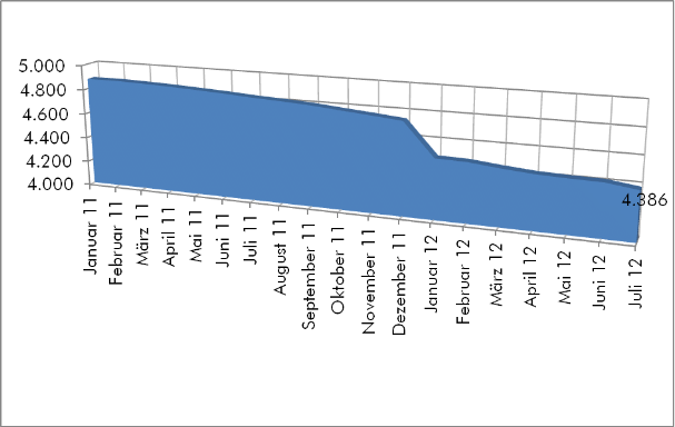 Entwicklung der Langzeitbezieher Januar 2011 - Juli 2012
