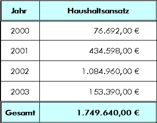 Die voraussichtlich entstehenden Mehrkosten in Höhe von 450.000 € sind im Kreishaushalt 2003 zusätzlich bereitzustellen Anlagen: