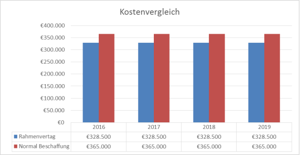 Das Gesamtvolumen eines Rahmenvertrages würde sich somit über die Vertragsdauer hinweg auf 1.314.000 € belaufen.
