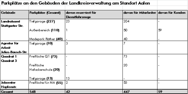 Die Landkreisverwaltung nutzt aktuell am Standort Aalen neben dem Hauptgebäude in der Stuttgarter Straße vier weitere Gebäude, die extern angemietet sind. Aktuell befinden sich insgesamt 520 Arbeitsplätze im Landratsamt sowie weitere 292 Arbeitsplätze in den Mietgebäuden. An allen Standorten sind die Flächenkapazitäten vollständig ausgeschöpft.