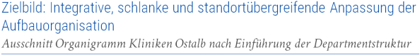 Mit der Einrichtung von Departments wird die heutige abteilungs- und standortbezogene Organisation weitgehend durch eine standortübergreifende Departmentstruktur ersetzt. In Departments werden hierbei Einheiten mit gleichen und verwandten medizinischen Abteilungen verstanden. Die Verantwortung für die Weiterentwicklung der Kliniken Ostalb innerhalb der Departments wird gestärkt.