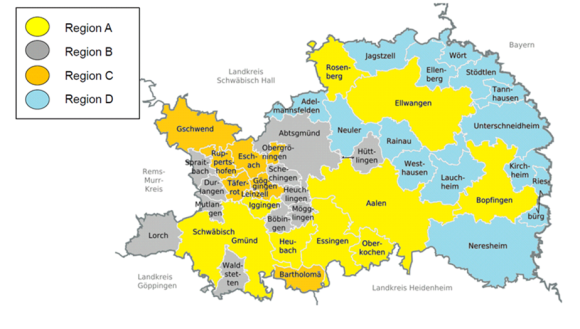 Die Umsetzung orientiert sich hierbei an den für den Ostalbkreis definierten vier Ver-gleichsräumen: