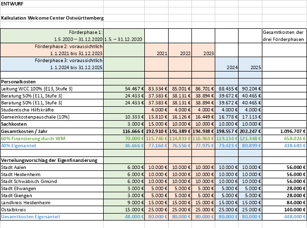 Die WiRO hat ein dezentral ausgerichtetes Konzept zur Organisation und personellen Ausstattung eines Welcome Centers zur Wirkung in der gesamten Region Ostwürttemberg ausgearbeitet (siehe Anlage).