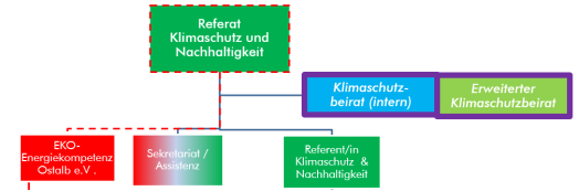 Das neue Referat Klimaschutz und Nachhaltigkeit (IV/01) ist im Dezernat IV, dem Umweltdezernat, verortet. Die formale Trennung zwischen Landkreisverwaltung und Verein EKO-EnergiekompetenzOstalb e.V. bleibt auch mit der Einrichtung des Referats Klimaschutz und Nachhaltigkeit bestehen.