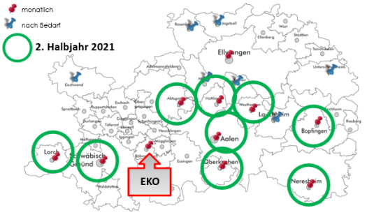 In Nicht-Corona-Zeiten bietet das EKO, zusätzlich zu den Beratungen im Energieberatungszentrum in Böbingen, in folgenden Städten und Gemeinden regelmäßig Beratungstermine an: