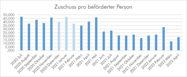Die Entwicklung der Nutzer ist erfreulich und auch die Durchschnittskosten pro Fahrgast sinken, aber mit jedem weiteren Nutzer steigt auch der Zuschussbedarf.