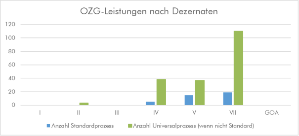 Für die interne OZG-Zielplanung wurden die Verwaltungsdienstleistungen zunächst den Geschäftsbereichen zugeordnet und von diesen nach Mehrwert priorisiert. Auf dieser Grundlage vertritt der Bereich Digitalisierung die Interessen der Landkreisverwaltung bei der OZG-Umsetzung im interkommunalen Austausch. Die Prozesse verteilen sich in der Landkreisverwaltung auf die 6 Dezernate wie folgt: