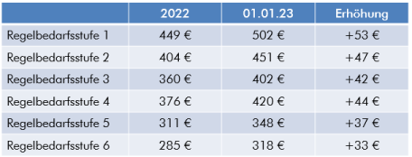 Die Fortschreibungen der Regelbedarfe spiegeln künftig die zu erwartende regelbedarfsrelevante Preisentwicklung zeitnaher und damit wirksamer wider. Dazu werden die aktuellsten verfügbaren Daten über die regelbedarfsrelevante Preisentwicklung für die Fortschreibung zusätzlich berücksichtigt. Damit wird auch der in dem Beschluss des Bundesverfassungsgerichts vom 23. Juli 2014 enthaltenen Vorgabe Rechnung getragen: Es wird bei stark steigender Preisentwicklung eine zeitnahe Reaktion gewährleistet, damit es nicht zu einer offensichtlichen und erheblichen Diskrepanz kommt zwischen der tatsächlichen Entwicklung der Preise von regelbedarfsrelevanten Gütern und Dienstleistungen im Vergleich zu der bei der Fortschreibung der Regelbedarfe berücksichtigten Entwicklung. Als Folgewirkung steigen die Regelbedarfe zum 1. Januar 2023 deutlich an.