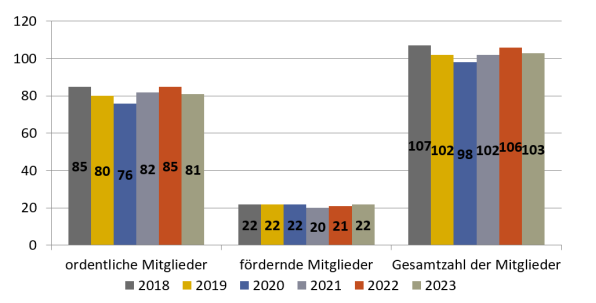 Die Vereinsmitglieder werden in 81 ordentliche und 22 fördernde Mitglieder unterschieden, wie das folgende Diagramm aufzeigt: