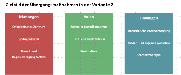 Leistungskonzentration in diesen hochspezialisierten Bereichen ist der einzig zukunftsfähige Weg für die Kliniken Ostalb zur Herstellung einer erforderlichen Marktposition. Dieses Handlungsgebot ist für den Ostalbkreis als großer Vorteil eines vorhandenen Wachstumspotentials zu werten. Ein Abwarten bis zur Fertigstellung und Bezug des Regionalversorgers und der hierdurch möglichen maximalen Konzentration von medizinischen Leistungen ist auf Grund der zu erwartenden Zuweisung von Leistungsgruppen durch das Land (spätestens 2025) ausgeschlossen.