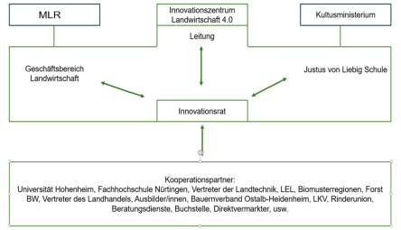 Der Innovationsrat setzt sich aus den beiden Gründungspartnern Geschäftsbereich Landwirtschaft des Ostalbkreis und der Justus-von-Liebig-Schule Aalen sowie der Geschäftsstellenleitung und Vertretern der Kooperationspartner zusammen. Der Innovationsrat berät über die Schwerpunktsetzung des Innovationszentrums Landwirtschaft 4.0.