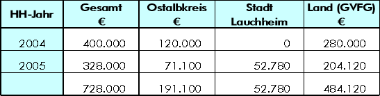 Im Kreishaushalt 2004 ist folgende Finanzierung vorgesehen: