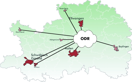 LeitungskostenEinen erheblichen Betrag innerhalb des Budgets des Geschäftsbereichs IuK erfordert die Bereitstellung von Datenleitungen zwischen den einzelnen Dienststellen der Landkreisverwaltung sowie der Anbindung an das Rechenzentrum in Ulm. Bis vor kurzem waren die Dienststellen der Landkreisverwaltung ausgehend vom Ostalbkreishaus in Aalen leitungstechnisch sternförmig angebunden. Auf Grund der hohen Kosten durch eine sternförmige Anbindung der Außenstellen wurden Überlegungen angestellt, ob durch eine Neukonzeption der Anbindung Kosten eingespart werden können. Nach Erarbeitung einer entsprechenden Neukonzeption in sogenannter Wolkenstruktur wurde eine Ausschreibung durchgeführt, bei der die ENBW ODR Ostwürttemberg als günstigster Anbieter hervorging. Trotz teilweise höherer Bandbreiten der Verbindungen zwischen den Dienststellen, konnte durch die Neukonzeption des Wide-Area-Networks der Landkreisverwaltung ein Einspareffekt erzielt werden, der sich gegenüber dem ursprünglichen Aufwand auf über 50.000,- € pro Jahr beläuft.